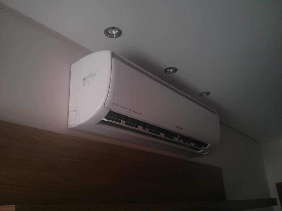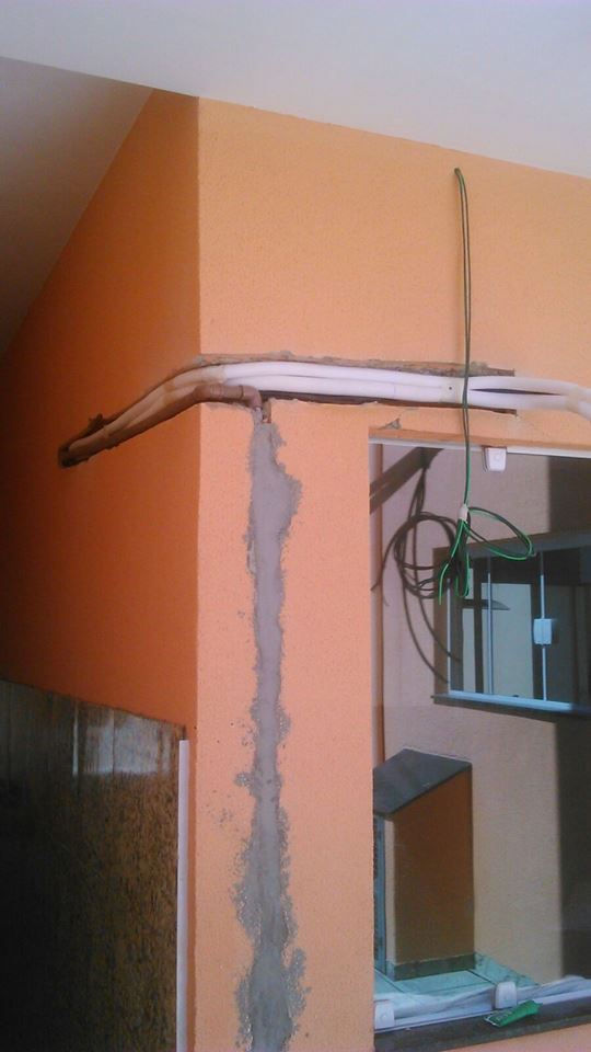 Nesta instalação nós cortamos a parede, imbutimos a tubulação e o dreno, fechamos os cortes com argamassa, tudo externamente, nada foi danificado na parte interna da residencia, e no final, instalamos o equipamento marca Sansung, 18.000 btu deixando a sala de estar do cliente muito mais conformtavel.
